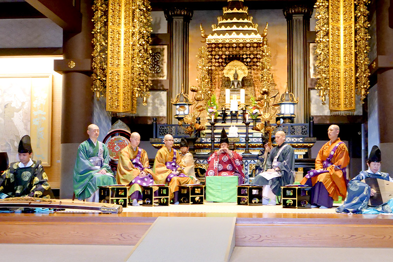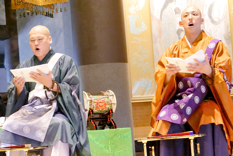 仏教のお経を美しく歌い上げる伝統音楽、天台声明。おごそかな演奏が披露されます。