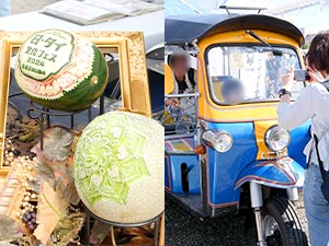 トゥクトゥクと一緒に写真を撮ろう!や、タイの伝統文化カービング体験「ソープカービングで、香りの壁掛け“サシェ”を作ろう!」を実施します。